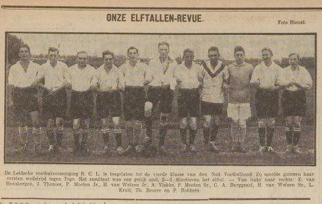 “De Leidsche voetbalvereniging R.C.L. is toegelaten tot de vierde klasse van den Ned. Voetbalbond. Zij speelde gisteren haar